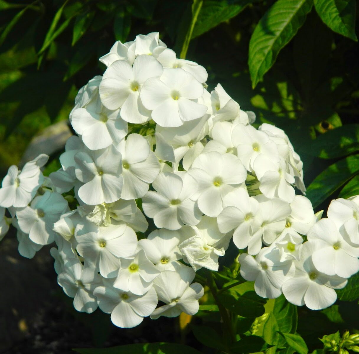 Флокс метельчатый Белоснежка – этот сорт цветет белыми цветками в форме звездочки, диаметром около 4 см. Высота куста до 70 см, куст хорошо держит форму, быстро разрастается и легко размножается. Погодные условия на внешний вид этого сорта не влияют. Зимостойкость: -40°С. Время цветения: июнь – октябрь.