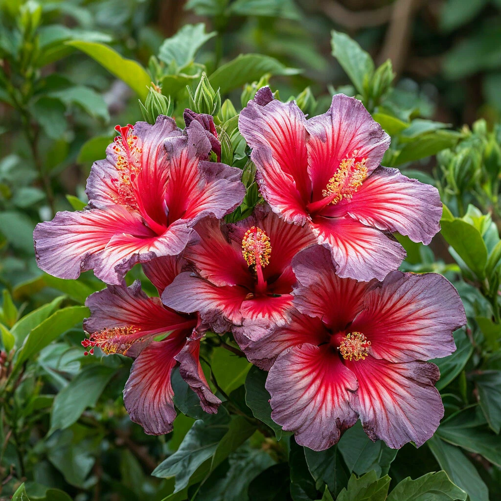 Гибискус «Кримсон Флейм» — это воплощение нежности и утончённости, завораживающее своей необычной красотой. Представьте: крупные, нежно-фиолетовые цветы, словно облака лаванды, с розовой сердцевиной, словно тёплый румянец зари. Этот гибискус создан для тех, кто ценит изысканность и стремится создать в своём саду атмосферу спокойствия, романтики и умиротворения. Его красота вдохновляет и дарит ощущение гармонии с природой.