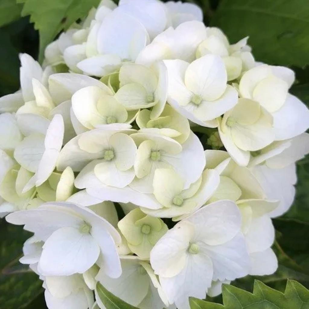 Гортензия Нимфе – цветки белые, с зубчатыми лепестками. Благодаря своей компактности, эта гортензия удобна как для одиночной, так и групповой посадки. Саженцы требуют внимания к составу почвы: не переносят известь и любят влагу. Если укрывать на зиму, то Нимфе отзовётся благодарностью в виде изящных белых соцветий, диаметром до 20 см. и цветущих с июля по сентябрь. В зависимости от кислотности почвы может менять окраску. Возраст саженца при продаже однолетка, с закрытой корневой системой