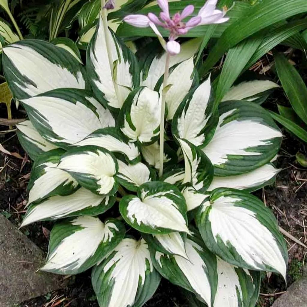 Хоста Файер энд Айс – порадует вас красивым сочетанием белоснежного и темно-зеленого цвета на листьях. Это нарядное растение отличается также и своими светло-сиреневыми цветками, собранными в многоцветные кисти. Хоста Фаер энд Айс нетребовательна: растение не боится заморозков, не страдает от болезней и насекомых, устойчиво к непродолжительной засухе, растет в тени практически на любых почвах, но предпочтительнее будут плодородные влажные почвы. Высота растения 30см. Ширина растения – до 60см.