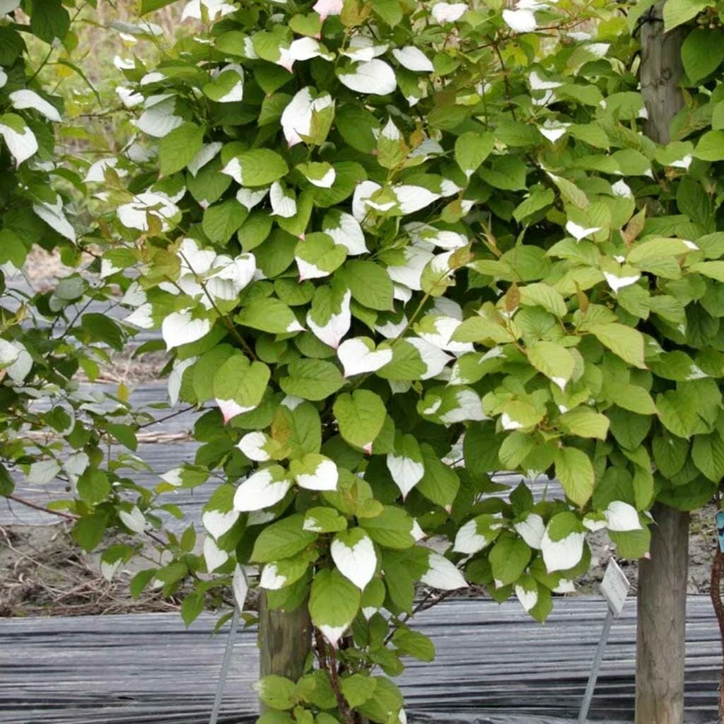 Актинидия коломикта Адам мужская особь – многолетняя лиана до 4 м высотой. Используют для опыления женских и обоеполых растений. Опыляет 3-5 женских растений того же вида. Побеги вьющиеся, неопушенные, без шипов. Может расти и плодоносить в Сибири.