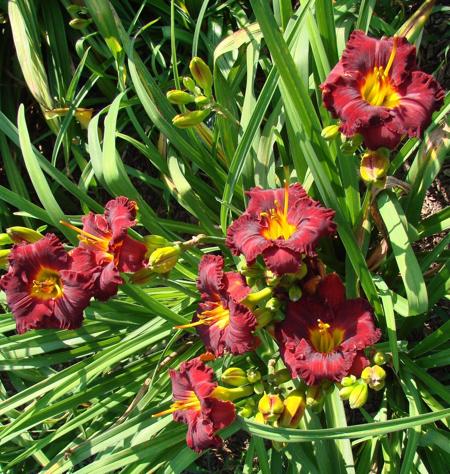 ПОСАДКА. Лилейники отблагодарят Вас своим ярким цветением, если Вы посадите их на совершенно солнечное место в саду. Выкопайте ямку гораздо глубже длины корневой системы. На дно ямки насыпают смесь компоста, торфа и земли. Растение помещают в ямку, корни расправляют, присыпают землей, хорошо уплотняют и обильно поливают. Когда вода войдет в землю, снова присыпают землей и уплотняют. Нужно следить, чтобы корневая шейка была ниже уровня грунта не более чем на 2 см. Сверху мульчируют торфом или перепревшим навозом. Если посадка осуществлена по всем правилам, влаги будет достаточно для укоренения молодого растения.