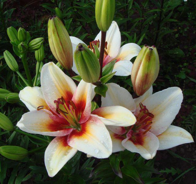 Стебли у сорта прямые, ярко-зеленые, густо облиственные. Также они могут быть темно-пурпурными, с коричневыми штрихами. В длину достигают 1 м. Цветки чашевидные, собранные в соцветия по 6 – 7 штук. Лепестки кремовые, с двухцветным пятном – красно-оранжевым ближе к основанию и оранжево-желтым в середине. Луковицы округлые или яйцевидной формы. Состоят они из отдельных незамкнутых чешуек, плотно сцепленных друг с другом. Сорт пригоден для срезки.