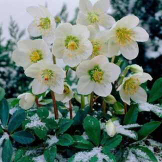 Морозник Вайт Бьюти – это вечнозеленое многолетнее травянистое растение, относящееся к семейству Лютиковых. Вайт Бьюти обладает крупными цветами с белоснежной внутренней поверхностью и бледно-розовой наружной. Чем старше растение, тем активнее проявляется розовый оттенок цветка. Кожистые темно-зеленые листья морозника не опадают зимой и легко переносят холода.