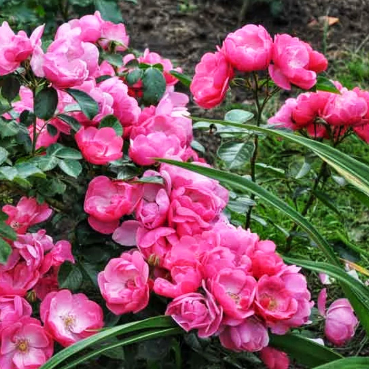 Это компактный куст, высота которого не превышает 40 см. Прямые и мощные побеги покрыты глянцевой, насыщенно-зеленой листвой. Цветки густомахровые, шириной от 3 до 4 см. Лепестки необычного карминно-розового цвета. Период цветения продолжительный и непрерывный. Роза источает приятный и тонкий цветочный аромат. Она отлично смотрится в бордюре, розарии, на альпийских горках среди камней и в срезке.