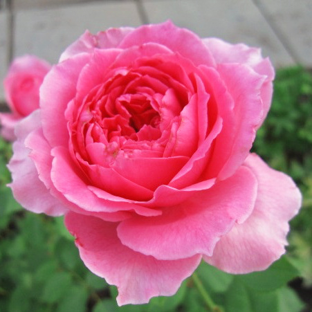 Выращенная в питомнике роза выглядит как сильнорослый куст, высотой 1,5 м. Побеги длинные и прочные. Под весом распустившихся цветков они не поникают. Листья крупных размеров, овальные, темно-зеленые. С внешней стороны они имеют глянцевый блеск. Бутоны махровые (состоят из 35 – 40 лепестков), классической бокаловидной формы. В верхней части они слегка заострены. Лепестки окрашены в насыщенный розовый цвет. По краям цветка они немного светлее. Ширина полностью раскрывшегося бутона составляет 12 см. Цветение пышное и длительное (вплоть до начала заморозков). Аромат тонкий, приятный, с нотками французских духов.