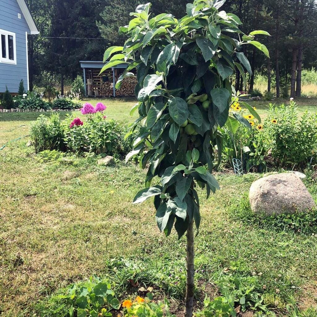 Среднерослый сорт считается очень удобным при сборе плодов. По форме дерево не занимает много места. Получается разбить небольшой яблоневый садик на небольшом участке.